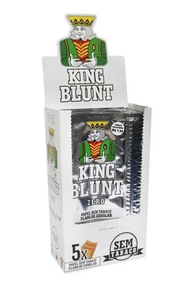 DescriçãoA King Blunt é uma das marcas mais fortes do mercado quando o assunto são blunts. Esse sucesso é justificado pelo sabor inconfundível e quase que transcendental de suas sedas. São produzidas com papel vegano, sem adição de tabaco. Pacote com sistema de fechamento diferenciado, criado para manter o sabor do produto por muito mais tempo. Este kit conta com grande variedade de aromas – ideal tanto para quem quer experimentar diversos sabores, tanto para quem gosta de todos., Marca king blunt (aleda) Linha BLUNT Modelo 05 BLUNT EM CADA PACOTE Unidades por embalagem 25 Formato de venda Unidade Unidades por kit 25 Outras características Comprimento x Largura: 110 mm x 60 mm